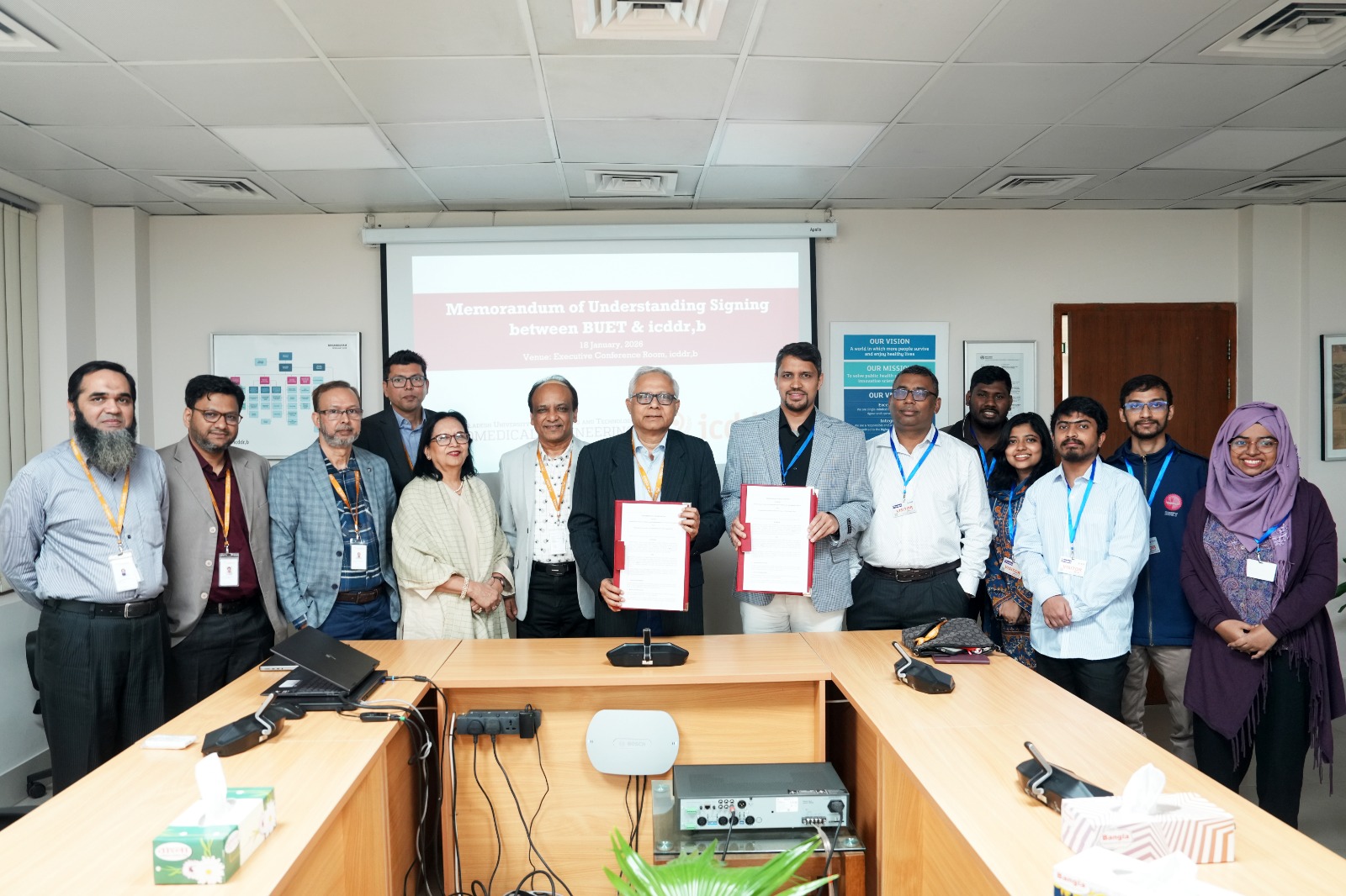 On 18 January 2026, the Department of Biomedical Engineering of Bangladesh University of Engineering and Technology and icddr,b signed a Memorandum of Understanding (MoU), establishing a five-year framework to advance interdisciplinary research and innovation at the interface of biomedical engineering and public health.